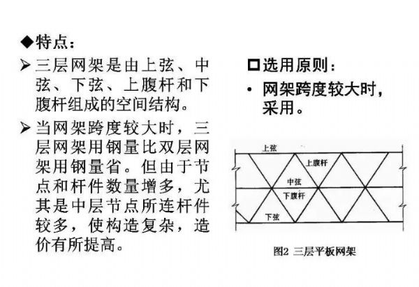 本文主要講述了網架結構的形式、設計選型、支承體系以及網架的找坡方法,并進行了常用網架設計軟件的比較,對空間鋼結構尤其是網架網殼結構感興趣的朋友不妨一讀。