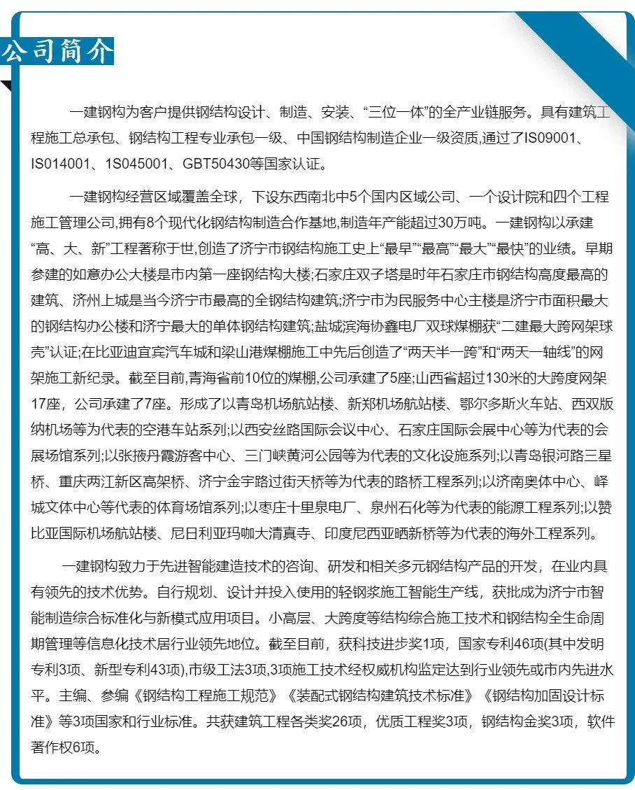 濟寧一建鋼結構工程有限公司承建該項目圖書中心、綜合樓的網架、管桁架、鋁板幕墻及看臺、門衛等部分工程。